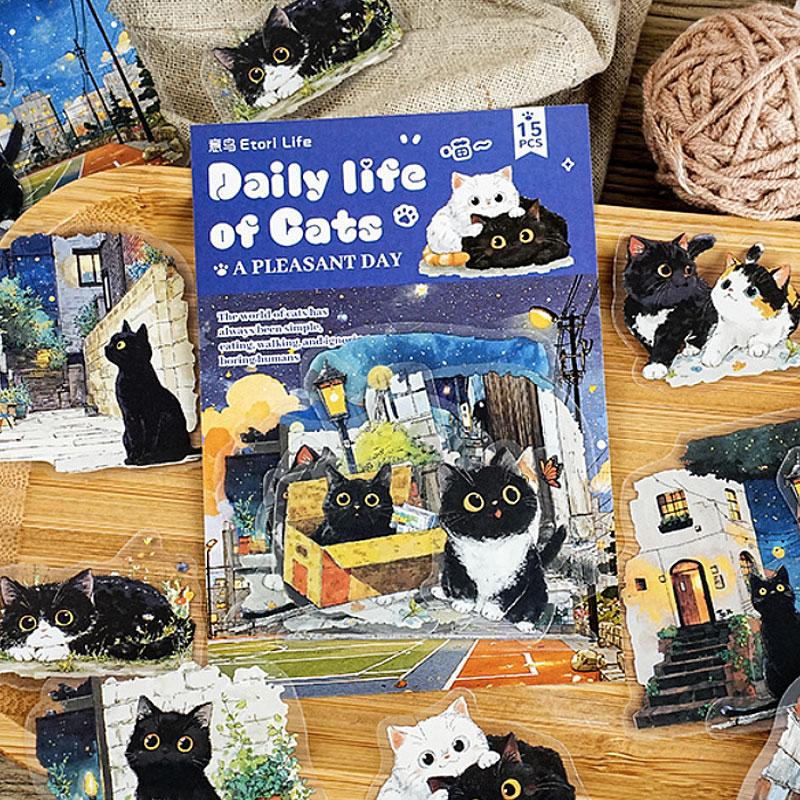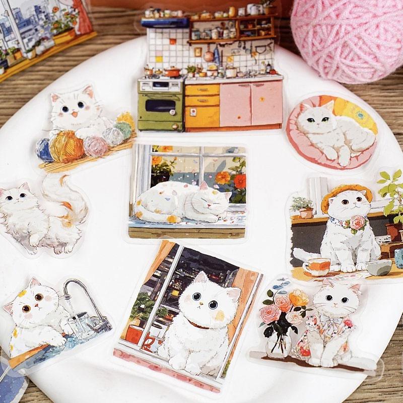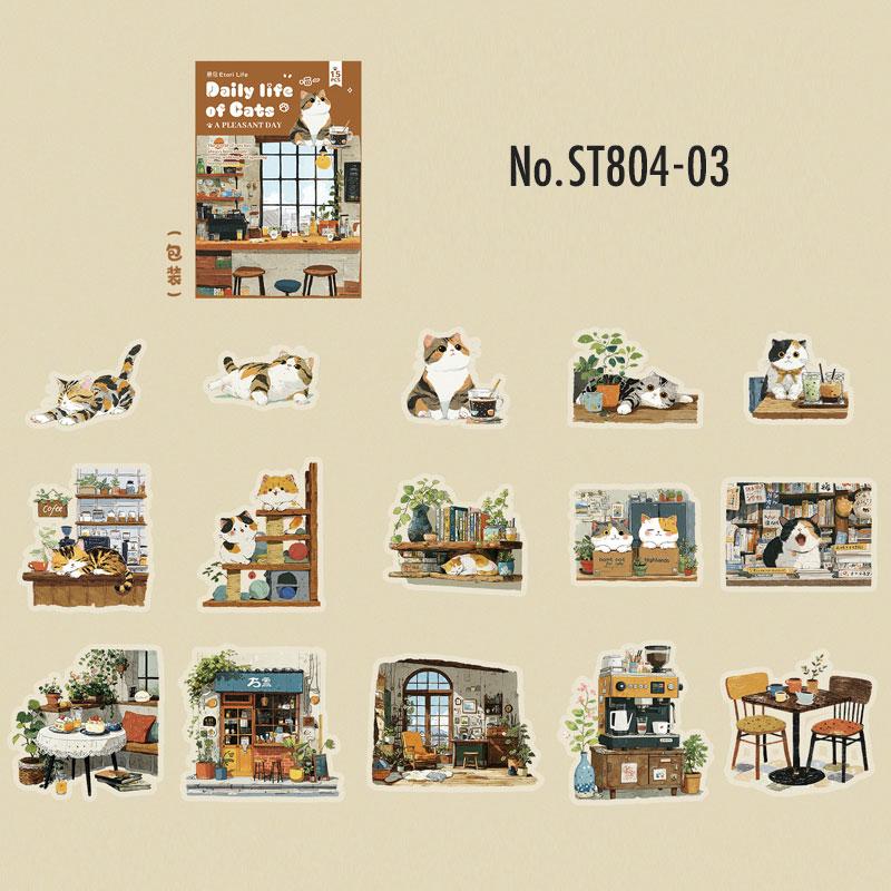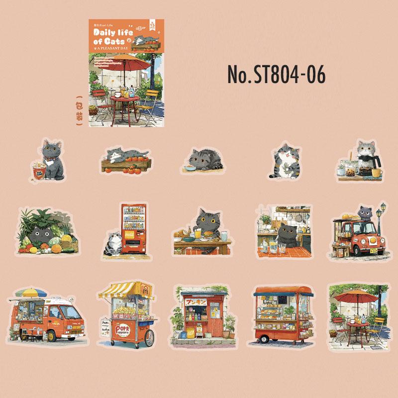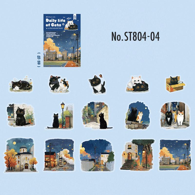 ST804 シール ネコ 猫 マスコット 可愛い 黒猫 白猫
