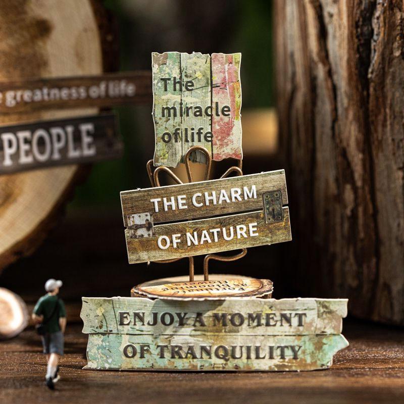 ST810 シール 木目 板 丸太 看板 フレーズ 英語 英単語