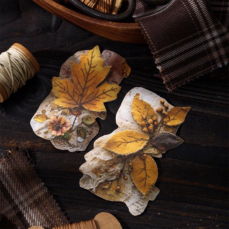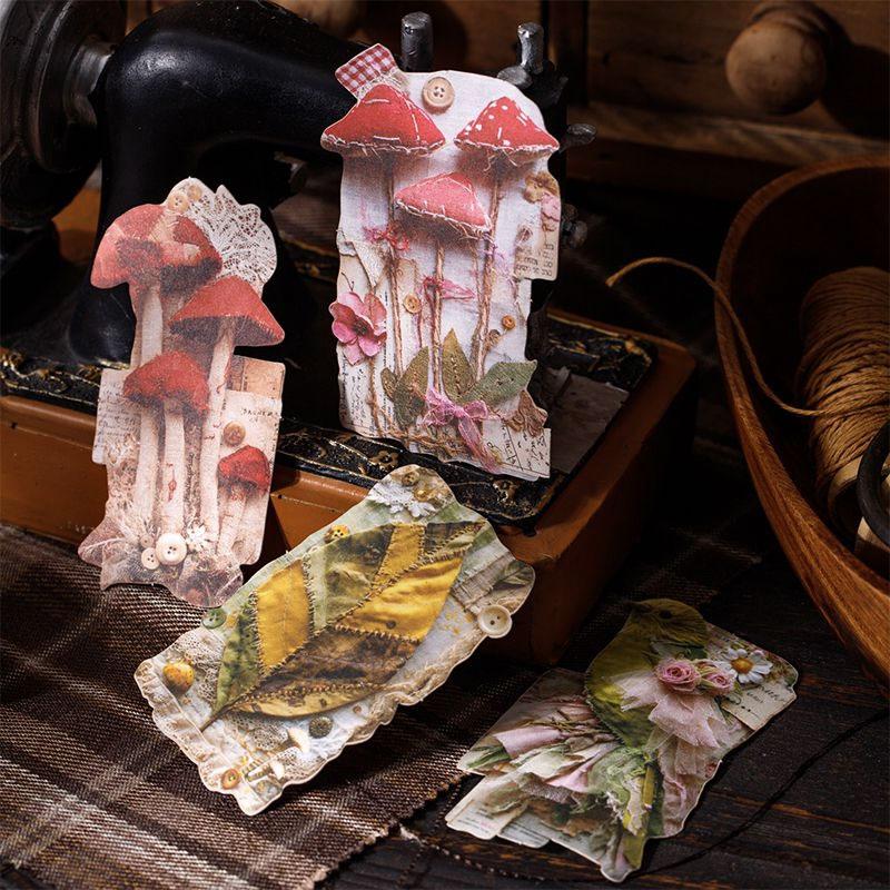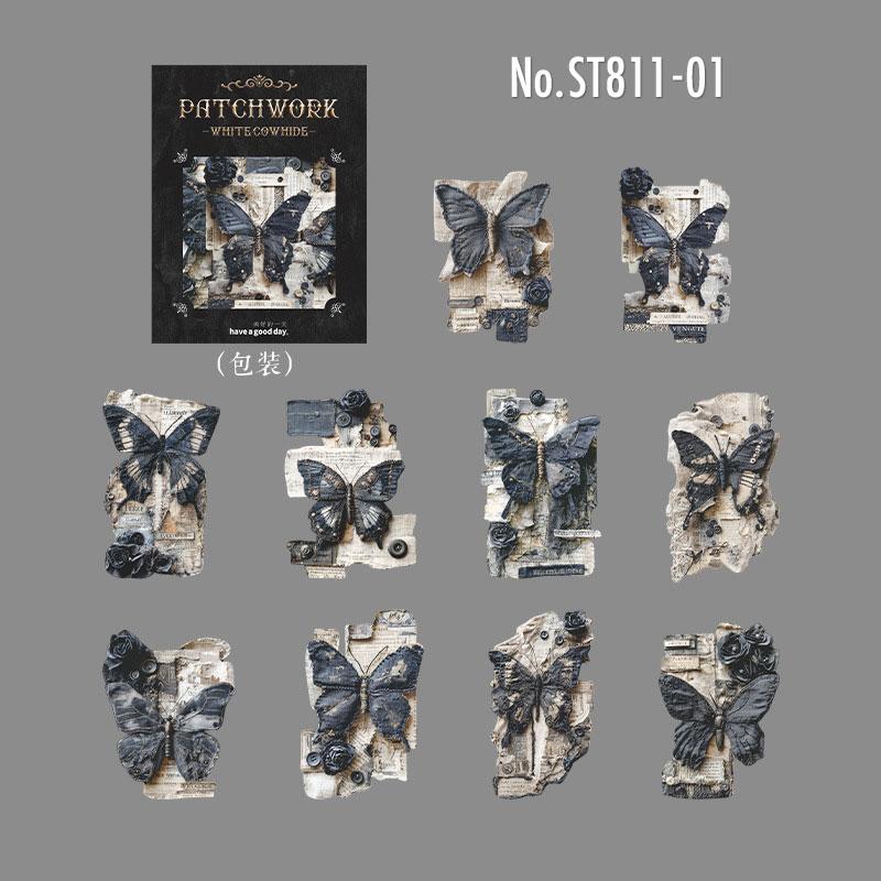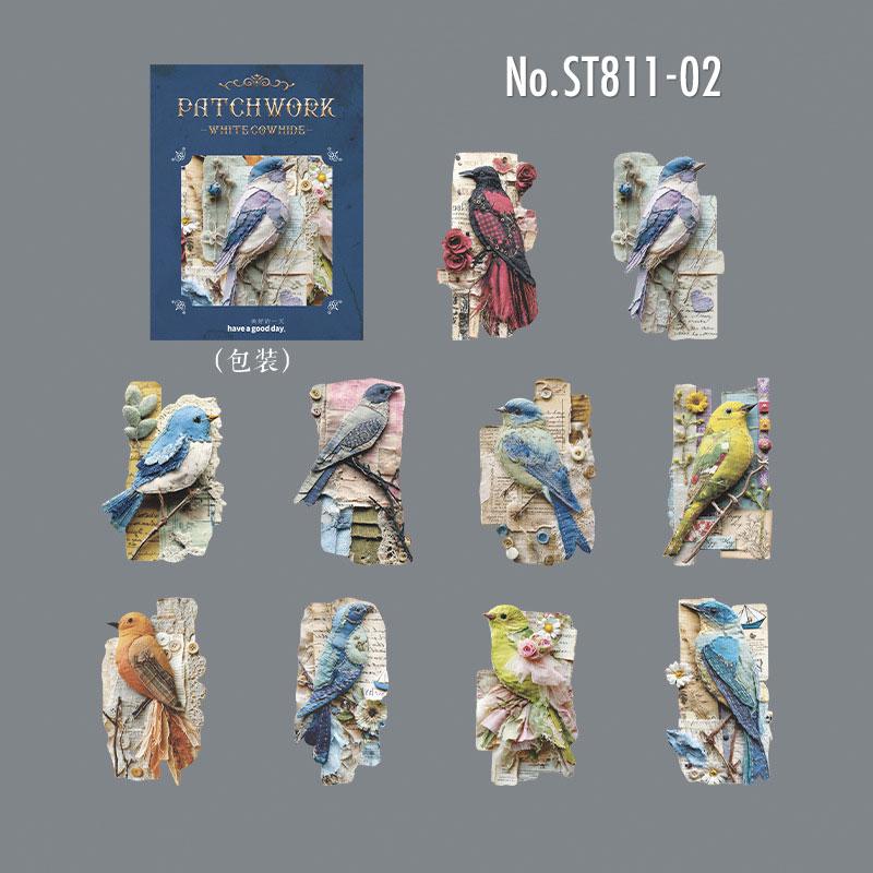 ST811 シール パッチワーク 蝶 小鳥 キノコ 花 バラ 紅葉 葉っぱ 時計 懐中時計