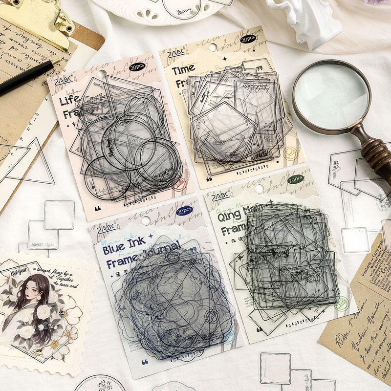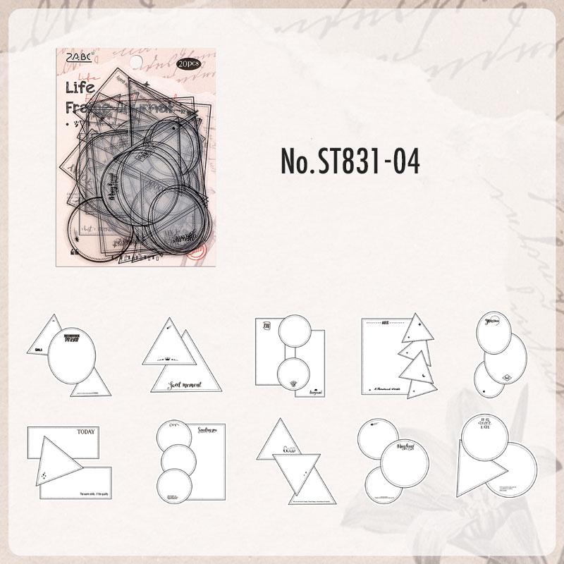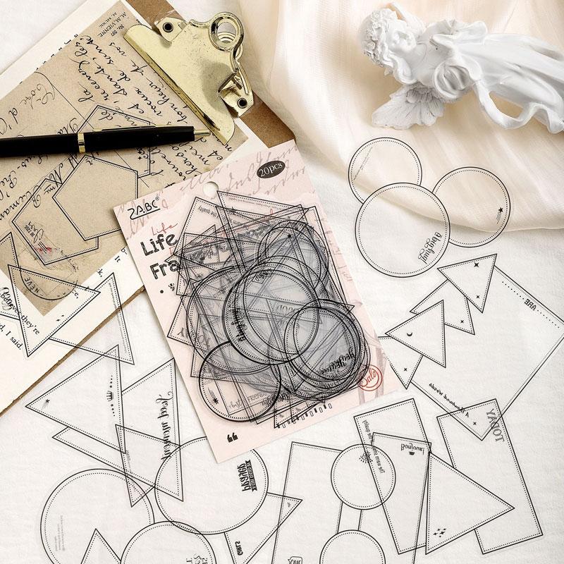 ST831 フレーム 透明 ラベル 枠 額縁 ノート 丸 三角 四角 コラージュ素材 コラージュ シール ステッカー 紙もの 手帳 日記 海外 紙モノ 紙物